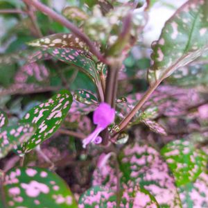 ヒポエステスの花✨ ヒポエステスの葉の下に 、控えめに咲く小さな小さなピンクの花を見つけました~😆🎶