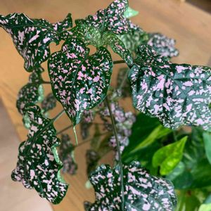 3/11 (水) ︎☆。.:*・゜🌟 💗💚ヒポエステス💚💗 和名💠ソバカスソウ 科名❀✿キツネノマゴ科 属名❀✿ヒポエステス属 ♣観葉植物 葉は卵形で緑色、全面に赤色、桃色、白色の斑やスポット状の斑点が入ることから、和名でソバカスソウとも呼ばれます。冬から春に上部の葉のわき付近に紅紫色の花を1つずつ咲かせます。♣
