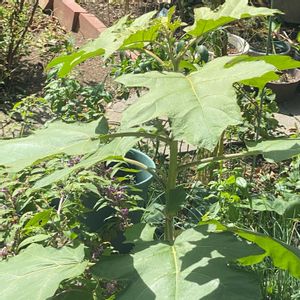 トルバムビガー☘️が立派な葉を持ちスクスク育って来ました。 トルバムビガーって何? 実は昨年接木ナス🍆を育てた台木なんです。 面白いので台木部分を残して上部をカットしました。 どんな花が咲いてくれるのか楽しみたいと思います(^^)