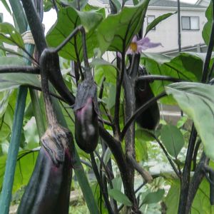 白ナス🍆の脇から 見たことのない実が😲調べてみたら ナス🍆はナス🍆にトマト🍅はトマト🍅に接木しますが、キュウリ🥒はカボチャの台木に接ぎしてるそうです。ナスの品種のトルバムビガーってのが 台木らしく その実が成ったみたいです😅おもしろ~い🤭