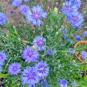 毎日やってくるミツバチのために花がら摘みをしてるヤグルマギク💙🩷🤍 ④何の種を蒔いたのか覚えてなかったのですが花友さんの投稿で判明したベルガモット🌱 ピンクのお花が咲き始めました🩷