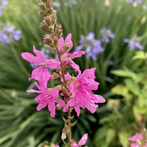 強い雨が3日くらい降り、庭の花たちは乱れ放題! お隣側に行って直してきました🌿 でも水不足の庭に恵みの雨でした。 ベルオブウォーキング、お隣側から ほら!ヤッパリ咲いてる〜🩷🩵 我が家からは見えないの😭 ②ミソハギは豪快に咲いれます ③ゴールデンカサブランカ咲き始めてました 🏷️青い花で夏祭り2025