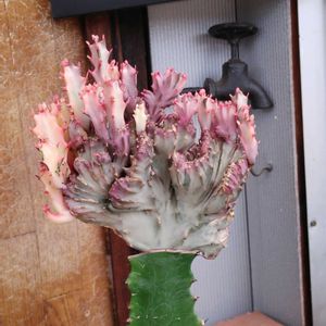 🏷️毎月6日はカエルの日 🏷️カエル仲間に参加させて頂きます(。˃ ᵕ ˂ ) Standard Productsにこの夏 アガベが3種類販売されていると聞いたので、2回目ですが昨日行ってみました。 ワクワクしながら来店すると、ちょうどマダムがアガベの前に。 その方の横に立って ほんのりグレージュピンクの葉をした観葉植物を見ていると…。 ・マダム➡️『たくさん植物を持っているんですか?』 まさかアガベ見たいから順番待ちとは言えないので…。 ・私➡️『観葉植物は持っていなくて、アガベやサボテンを持っています』 サボテンゾーンの中に このマハラジャが置いてあり、マダムは。 ・マダム➡️『コレって本物?凄いよね?フェイクかと思って』と言いながら、上のピンク部分をガシガシ握ったり撫でたりしてました。 あまりの力強さに、『痛かったらどうするの?』の思いと『あっ!商品ですよ』と思わず思ってしまいました。 その後もこのマハラジャの話や ご自身がこの夏大切にしていた植物を駄目にされてショックを受けた話など色々教えてくれました。 この日は娘の下校時間が早く 少し急いでいたので、失礼ながら話を聞きつつアガベを物色し1つ選ぶと ・マダム➡️『どれ買うの?植物好きな人 私好きなのよ~』と。 社交的なマダムとの時間は楽しかったです(。˃ ᵕ ˂ ) マダムのおかげで、そのガシガシ握っていたマハラジャも気になり購入しました(*´艸`) 1つしか無かったので、もちろん揉まれたマハラジャを。 しばらくは、水をあげる度にマダムを思い出しそうです(*σ>∀<)σ その後、他の買い物中、ショップバックからはみ出た上部分から何ヵ所か白い液が。 帰りのバスで調べてみると、ユーフォルビアの白い液には毒性があると。 他のユーフォルビアでの体験談で、手を念入りに洗わなかったせいでコンタクトの入れ替え後、目に激痛とまぶたが腫れたり頭痛などの話…。 怖っ!購入後、突然のどしゃ降りでずぶ濡れになったのを拭いたり、ちゃんと手も洗わずランチしたりしてたので ドキドキでした。 自宅に帰り、念入りに手や腕を洗い その後も何事も無くホッとしています(*´-`) マダムは大丈夫だったのかな? 長文失礼致しました(*・ω・)*_ _)ペコリ ●ユーフォルビア属『マハラジャ』 Euphorbia lactea 和名: ユウヤケサンゴ 別名: ユーフォルビア・大明神 ユーフォルビア ラクテア・クリスタータ ユーフォルビアであるキリン角に綴化したユーフォルビアのラクテアという植物を接ぎ木しているそうです。