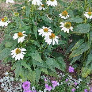 残暑お見舞い申し上げます☀️😵💦 暑い群馬の夏に負けずに、ずっと咲いていてくれているエキナセアさんとバーベナさんです😁THANK YOU✨丈夫で花期も長くて、助かります🍀😌🍀私の庭のセンターポジションにいます