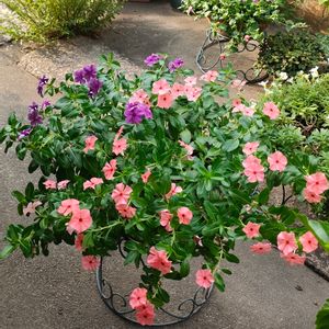 こんばんは🌃 庭のニチニチソウのお花🩷💜です。 もう一度カットしたら綺麗に咲くかな? ちょっと暴れてます😅