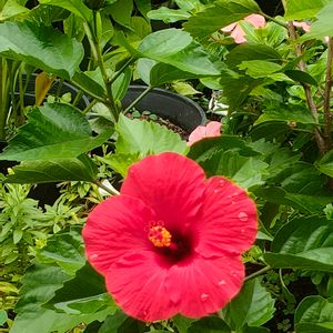 こんにちは☔ 今日はハイビスカス🌺 赤のお花が咲きました💕 蕾もまだまだあります🥳