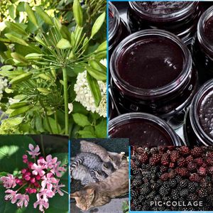 おはようございます 今日も暑くなりそうですね お気を付けてお過ごしください 昨日ブラックベリーが貯まったのでジャムを作りました 冷凍した物、収穫した物合わせて2㌔有りました 赤い方が冷凍したブラックベリーです 保存ビン8本出来ました 白バナのアガパンサスの実が沢山着いていました 今年植え替えを忘れたボタンクサギが、小さな花を咲かせています 来年は植え替えますね 子猫はお母さんが大好きです 今日も見ていただきまして、ありがとうございました