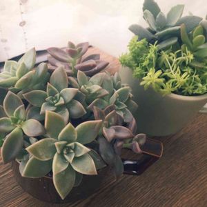 寄せ植えリベンジ。 先週寄せ植えをした多肉ちゃんたちが残念ながら元気がなくなってしまい( ; ; )生き残った多肉ちゃんに新たにプラスして寄せ植えし直してみました‼︎ どうしたらすくすく育ってくれるのかな〜。