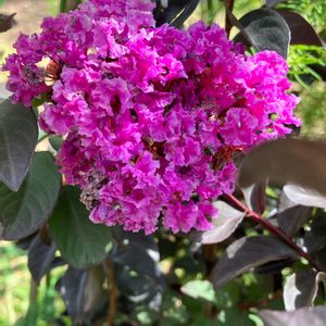 カラーリーフが好きで、このブラックリーフに惹かれて昨年迎えたサルスベリ🖤ブラックリーフダイアモンド💜 昨日やっと蕾が開きかけていたので、今日のお花に間に合うかなと思っていたら、雨の中☔開花してくれました🎶 最後のページの白花も好きで、昨年一緒に、とても小さな苗で迎えたものです✨🤍✨