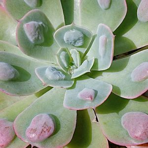 パクさん苗イズミルの葉挿し。 葉っぱがむっちり♡肉厚で いつもむにゅってしちゃう子。:+((*´艸`))+:。
