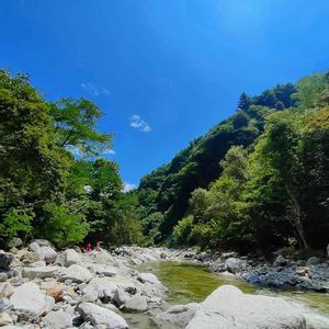 山梨県尾白川渓谷に来ましたー 川の水が透き通ってとても冷たいです✨ 日本名水百選🏞️ サントリー南アルプス天然水のふるさとです🫧