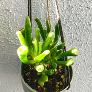 ベランダの多肉さん 朝日を浴びるハッピームーン💚 緑化センターで購入したものです😊 星の王子さまと南十字星は入手できずw 三種を寄せ植えしたいなぁ…