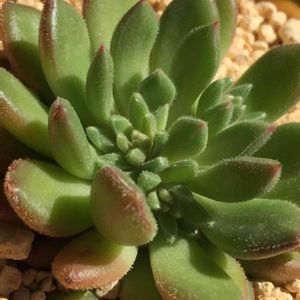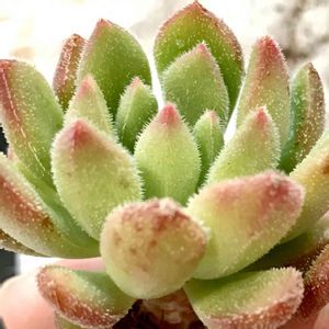 フリーダカーロ エケベリア属 微毛が太陽に反射して キラキラ輝くエケベリア✨ オレンジの紅葉も素敵ですが 成長点辺りは黄緑色になってきました^^ ぼちぼち夏顔に変身かな〜