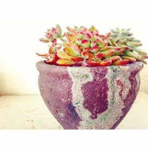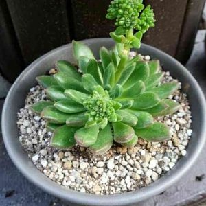 こんにちは🍀 夕方から雨予報のはずが 少し早まりそう…🌂 エケべリア フリーダカーロ 情熱の画家、フリーダ・カーロ?!! 彼女はあの繋がった眉毛がお気に入りだったと記憶しているので、これは切り離すわけにはいかない… 円い鉢に植えたら良かったな〜😔