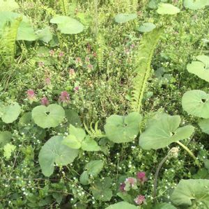 桜並木の下に🌸🌸🌸 気になるものがありました もしかしたら? 「サンカヨウ」と思いながら??? ツワブキでした‼️