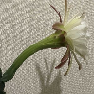 昼過ぎの花芽 膨らんできたー^ - ^ 夜9時→満開に❣️ 直径18cm 香りは、月下美人とは違い 鼻を寄せるとわかる甘いもの コレならば‥リビングで鑑賞出来る