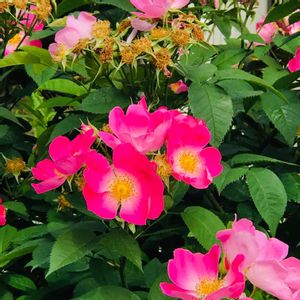 こんにちは😃 肌寒いくらいの一日です☁️☁️ 今日の1枚は 🌸🌿🌸つるバラ カクテル🌸🌿🌸 これまた造花みたいなピンクちゃん🌸🌸🌿🌸が、色気の無い遊歩道で目立ちまくりだったんです✨💕 🌿🍀 ☘️🌿 今日の散歩🚶♀️🚶♂️コースは、駅の向こうの遊歩道。そこで気づきました💡✨ 「遊歩道」と一口に言っても、同じ町内なのに全然違うんです🧐 いつも通るこちら側の遊歩道は、季節の花が植えられていて、通る私たちを楽しませてくれます🌿🌸🌼🌺🍃 それに対して、駅の向こう側の遊歩道は、ほとんどがかわりばえのしない木で、花はほとんど無い🌿🌱🌳🌿🍃緑が多いのはいいのですが、楽しみが少ない🙃 そんな、あまり楽しくない遊歩道の出口で「お疲れさま✨」とでもいうようなカワイコちゃんたち😍に、いっぺんに癒されたのでした💕✨