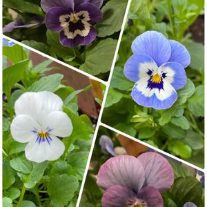 今期 初めて買った ビオラさん✨ 今季は 暖色🧡💛を買うつもりでした。 しか〜し… 真逆の寒色🩵🤍💜を購入。 「信州育ちのビオラ✨」 のタグと 水色のオジサン🩵と目が合い 購入する事に…😅 目力強し‼️