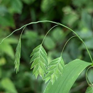 ワイルドオーツ ノーザンウッドオーツ シュッコンコバンソウ (宿根小判草) ニセコバンソウ イネ科 チャスマンティウム属 ’25.9.25 撮影 コバンソウだと勘違いしてしまいました ニセコバンソウです 結果、間違いを投稿してしまいました ご覧になった方、ごめんなさい 何か引っかかって、調べてみました 勉強になりました😊