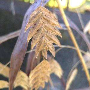 庭の隅に繁っている「ニセコバンソウ」です。 茶色になった小穂が 陽に当っていましたが、黄金色ではありません!やはり “ニセ” ですね😆