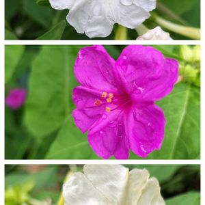 🩷🤍💛オシロイバナ3色 昨日の朝、雨粒付けたオシロイバナが綺麗でした! オシロイバナの根っこが残ってるので 刈ってもまた芽が出てきます。 大きくもしゃもしゃと広がるので 少しお邪魔な存在ですが 花はとても素敵︎🌟 今日は終日曇り予報です☁*° 昨日洗濯沢山しておいて 良かったな🤩