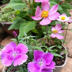 今日のお花 🩷シュウメイギク🩷 と紫がかってるのがお気に入りの 💜ナデシコ💜 どちらも100円くらいでゲット🤗 このタイプのシュウメイギクは既にあるのに 保険用にちょうどいいのがありました❣️ 来年も宜しくね🙏