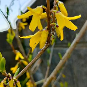 💛レンギョウ💛 無料配布から3年〜 庭の隅に地植えしたら 少し大きく伸びてきました😃 今年はさらに大きくなるのかな? どこまで大きくなるのかな? 剪定しまくりになるのかも😂