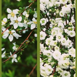 雨ばかり降りますね☔ そんな中でも庭の見廻りは欠かせません😚 白い小花が咲いて来ました! 左手はユキヤナギ 右手はシジミバナ どちらもそっくり。 シジミバナはユキヤナギの八重咲きと思ってましたが そうではなくて別種でした😚