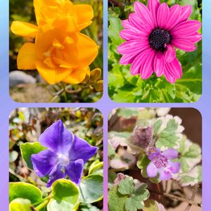 春になってきましたね! 沢山花が咲いて来たので 4分割😄 💛八重咲きフリージア 💗オステオスペルマム 💜斑入り葉ニチニチソウ 🩷️斑入り葉グレコマ フリージアは良い香りで 白いのはまだ咲きません オステオスペルマムは私のアイコンになってるのです 下2種は斑入りがお気に入り😍