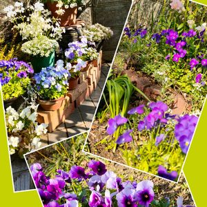 💜花盛りが嬉しい 北側に門があって日当たりなど無いと思い込み 紫陽花など植えて ほとんど放置? だけどよくよく観察してみたら 日が当たる時間があるではないの🤩 それでビオラ中心に鉢を置いたり植えたりしてみました! 真冬は寂しくても 春からは楽しい北側になりました☺️