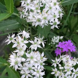 🤍ニラの花🤍が 綺麗に咲いてました! 周りの葉っぱは ピンクの花の バーベナリギタのです。 近ずくとぷーんとニラの香りが🤗 料理に使うほどは無いので 花を楽しむだけにしてます😊 今日はお出かけするので コメント欄閉じますね🤗
