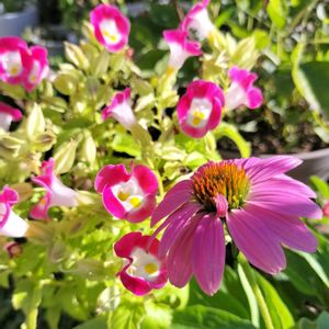 🩷エキナセア 2度目の開花が一つだけ😄 🩷トレニアはこぼれ種のです😙 おはようございます🩷️ 昨日は曇りなのに思いがけず暑くて 汗かきましたが 今日はお日様出てるし、やはり暑いのかな? エキナセア、頑張って1個だけ咲かせましたよ🤩