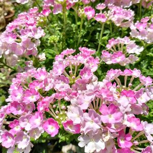 ☀️良い日が3日も続いて どこへも出かけない 私は家の中の片付け 野菜植えたり 忙しいわ🤩 先月買った見切り品セット6点500円のひとつ 💗バーベナ エストレラ 初めから大きくて 698円の値札も付いてたから なぜに見切り品になってたのか不思議でしたが! こんなに綺麗に💗咲いて来てきました😄 超お得😆 右下のはオマケ画像。 去年からのバーベナが 生き残ってくれました😙