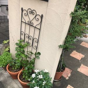 マツリカグレイスフルレディージェイドに 切り戻しをしてトレリスを合わせる。 南向きなので真夏は暑いかなー。