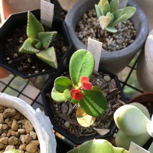 大好きな花キリン。 この赤い唇💋のような花が本当に好き。 小さな葉も可愛い😍 10㎝もない小さな苗が随分大きくなりました✨