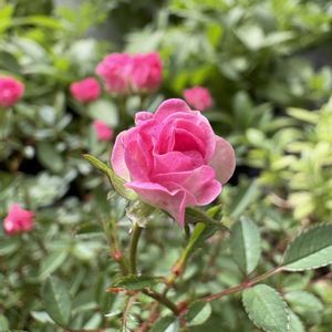 お仕事なかったので薬剤散布しました🚿ピエールに黒星っぽい葉を見つけて慌てました💦 ①ミコルフォンターナ 春のフェスで花ごころのイケオジ村田さんに勧められて衝動買いしたバラです🤣もっとお花可愛いんですがこのpicはなんか剣弁🌹 ②レヴリ 秋のレヴリのこの色好き💓 ③アダージョ 色濃く咲きました ④ワンダーファイブ 極小ミニバラワンダーファイブ よく咲きます ⑤シクラメンドラゴン 2色買いしました 昨年出たばかりのお高級ドラゴンの夏越し失敗したのでリベンジです 今年はお求めやすくて素晴らしい✨ 毎年秋に黒星が出やすいニューウェーブや和ばらのふみ、あおいなどが今年は春からNo黒星病です♡ ベニカXガード粒剤が効いてるんだと思います。 流石に大きなつるバラは撒くタイプだと無理ですね😅 ピエールさんは巨大なので黒星なんか出しちゃったらそこら辺中病葉だらけになってしまうので頑張ります。