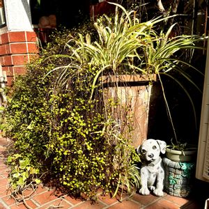 ほぼ毎朝、このワンチャンにご挨拶。 ピアノBARの番犬ちゃん。 鉢植えの植物さん達にずっと一緒に寄り添っているんだろうな。。
