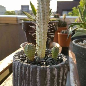 ユーフォルビア「白樺キリン」 少しピンクになってきました。 寒いからねぇ🥶 トゲに更に小さなトゲがあって可愛い🦒
