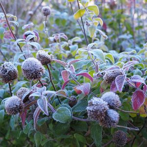 おはようございます。 今年一番の寒さです。 家の庭にも霜がおりました。 初氷も張ってます。 モナルダに霜が降りて綺麗です。