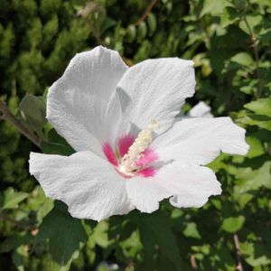 ムクゲ ムクゲ宗旦 ムクゲ日の丸 1日花の儚い美しさを、茶人 千宗旦に愛でられる。 白地に底紅 日本の国旗に似てるね。 大韓民国の国花でもある事に、日本のルーツを思う。 縁がピンクを帯びているのは、時間の経過かな。 本来は真っ白です。