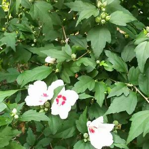 昨日 虫に狙われていたムクゲ 無事開花 今年の一番花 どこもかじられていなかった (*^_^*) 陽射しが無く涼しいので草むしり始めたら☔️ やめようかな?😘 雨のせいにしようっと🌿☘️🍀