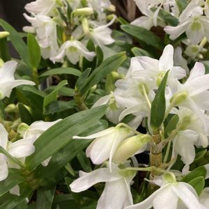 「ホクシア ジョリーズ」が花屋の店先に陳列されていた。 先端にバレリーナのチュチュのようなユニークな花を吊り下げるように咲かせる。 ハンギングにいい。