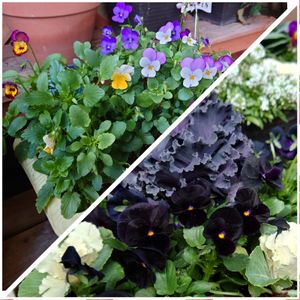 種蒔きビオラ混植しました♥︎ブラックビオラは輸入種子です✨退色感のない漆黒に近い黒色で私としては及第点ですが…👌いかがでしょうか?かぷりんさん?🤔