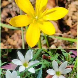 こんにちは☀ やっとキバナサフランモドキ💛のお花が1つ咲きました。 タマスダレ🤍のお花も咲いてます💕