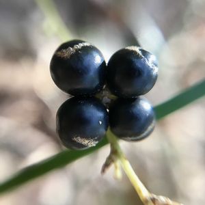 ヒメヤブラン(キジカクシ科)神奈川県より 2024.12.20撮影📲在来種 今年、果実を付けたのをやっと見つけた、この️一株👍🏻 天候のせいだったのか?ヤブランは元気いっぱいで果実を付けていたけど・・・姫は小さいからね〜😑