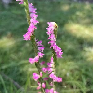 雑草の中に咲いてました ヒメヤブランは小さな花です 近くに腰を下ろしてふと気づきました ネジバナは目立ちますね⁉️ 💐このネジバナ反対に捻れてます 🤟🤟🤟