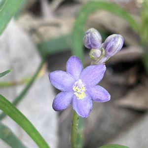 ヒメヤブラン キジカクシ科ヤブラン属 日当たりの良い草地に咲いています。 花はヤブランに似ています。 薄紫色で1cm位の小さい花だけど、何故か目立ちます。 広島県呉市の山で