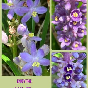 同じ蘭だと思ってました😃草刈りをした後から生えてくるから小さいのだと… 花の形が違うのにね〜💜💦💦 左💜ヒメヤブラン 右上下💜ヤブラン
