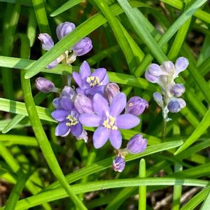 お出掛け🚙💨で寄った松林に咲いてた紫の可愛い花💜 💜ヒメヤブラン💜 ヤブランより小型です🎵花数は少ないけど1つの花は大きいみたい🎶 初めて見ました😌