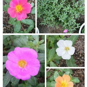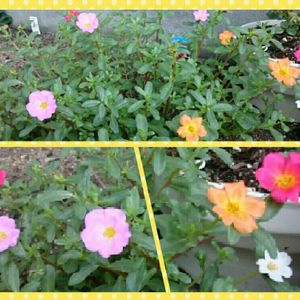 虹色ポーチュラカの苗から、 4色のポーチュラカが🌼 この前は、 ピンクのポーチュラカが咲いてましたが、 今日は、ピンクと濃いピンクと白とオレンジ🎵 まだ、少ししか咲いてないけど もっともっと増えるんだろな~(*´ω`*) 楽しみッ🍀